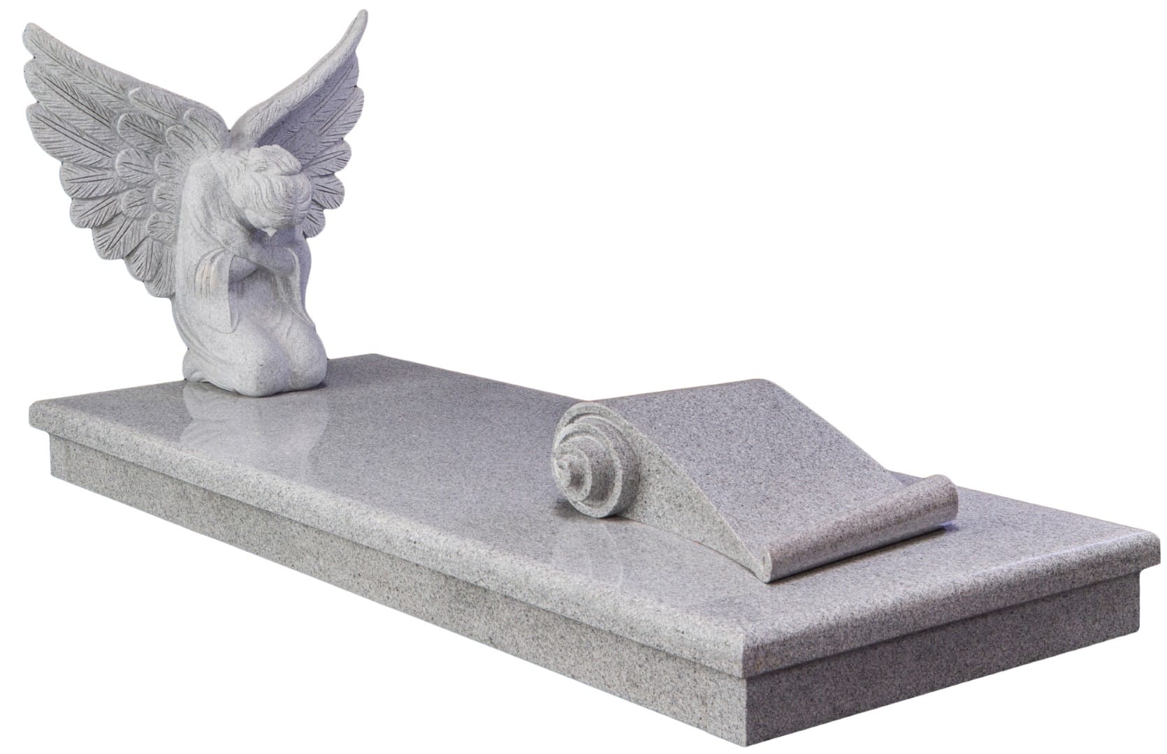 The WG119 Cemetery Kerb Set Memorial features a beautifully hand-carved angel with outspread wings symbolising peace and guidance. Complete with a scroll tablet for personalised inscriptions to honour your loved one’s memory with dignity and grace.