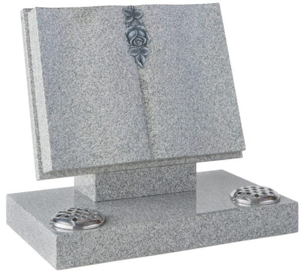 This elegant Book Shaped Memorial WG133 features a beautifully carved and highlighted rose as its focal point. Crafted in Lunar Grey, this dignified memorial offers a peaceful tribute to honour your loved one’s memory.