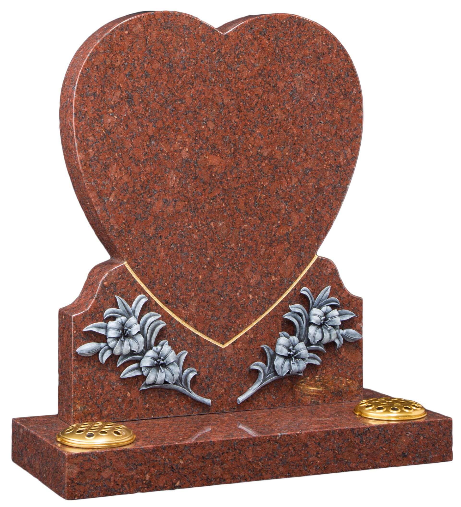 The WG160 Heart Shaped Memorial features a beautiful heart design with monotone resin ornamentation beneath a gilded pin line. Crafted from premium granite, this elegant memorial provides a heartfelt tribute to your loved one. Request a quote for pricing and customisation options.