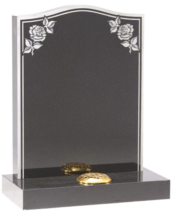 WG17 Cemetery Memorial features a classic double border framing the polished surface with elegant sandblast rose designs. A dignified tribute that balances sophistication with personal remembrance.