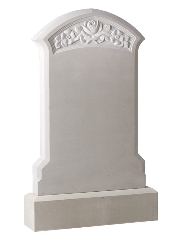 The WG170 Brenna Stone Funeral Headstone features a classic ogee shape with an elegant carved floral spray in a recessed panel. This dignified memorial offers a timeless tribute to preserve cherished memories with grace and respect.