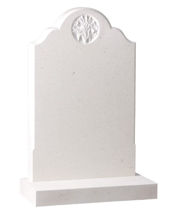 The WG174 churchyard headstone features a beautifully hand-carved lily symbol, crafted from premium Nabresina stone. This timeless memorial combines traditional design with exquisite craftsmanship to create a dignified tribute for your loved one.