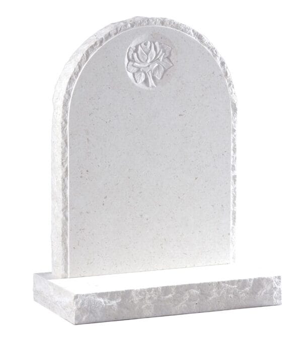 The WG182 Funeral Headstone, crafted from elegant Nabresina stone, features distinctive natural pitched edges and a beautifully carved rose panel. This timeless memorial combines traditional craftsmanship with dignified design, creating a lasting tribute for your loved one.