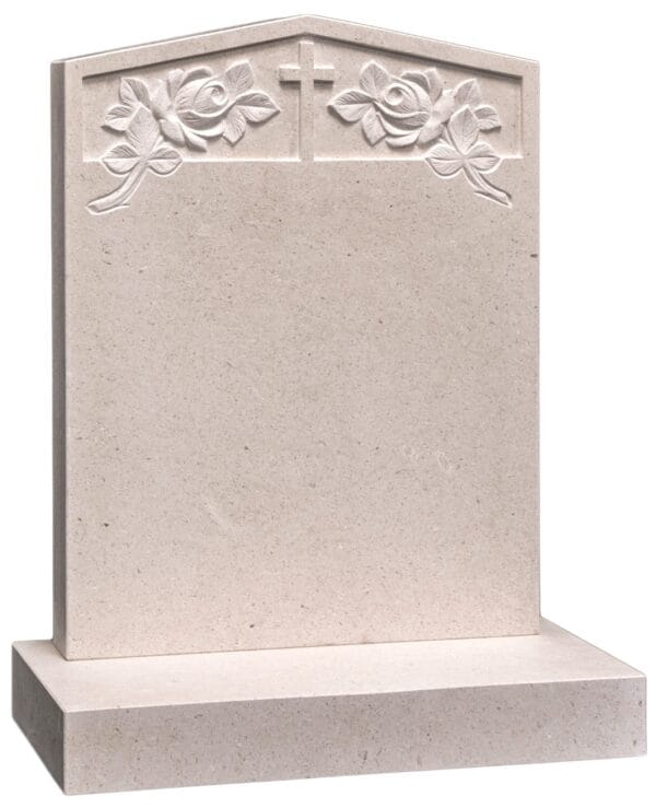 The WG184 Funeral Headstone in Nabresina features an elegant carved cross and rose panel design. This dignified memorial offers a timeless tribute to your loved one, combining traditional symbolism with natural beauty. Request a quote for this memorial today.