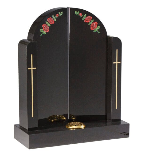 The WG204 Individual Monument features the symbolic Gates of Heaven design, crafted in elegant granite. With dual columns framing the gates and space for two separate inscriptions, this memorial offers a dignified tribute to commemorate two lives. Suitable for a double burial plot.