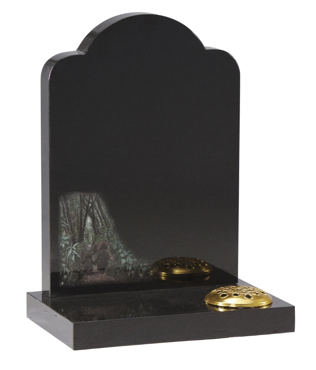 The WG225 Children’s Memorial features shadow-punched and painted teddy bears walking through a woodland scene. This sensitive and thoughtful tribute is designed specifically to honour a child’s memory with warmth and care.