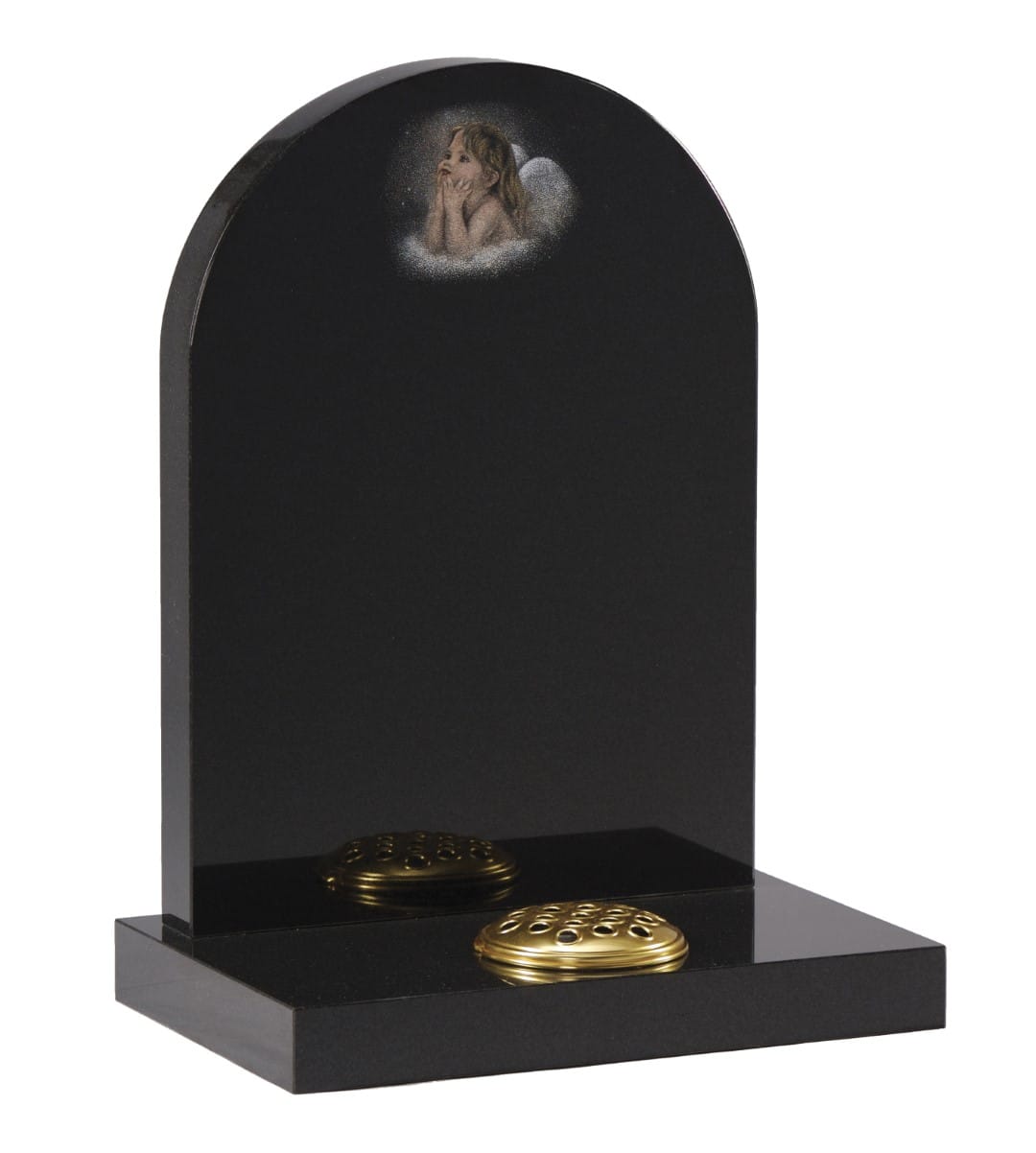 The WG226 Children's Memorial offers a gentle and heartfelt way to commemorate a young life. Crafted with care and sensitivity, this memorial features a half-round top headstone adorned with a delicately shadow-punched and painted cherub floating amongst clouds, symbolising peace, innocence and eternal care.