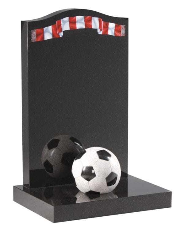 WG231 Children’s Football Memorial features a 9″ (23 cm) diameter contrasting granite football with customisable team-coloured scarf. Crafted from premium granite, this thoughtful memorial celebrates a young football enthusiast’s passion and spirit.
