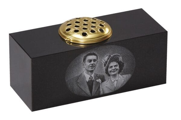 The vase's generous proportions allow for a bespoke etched double portrait, creating a truly unique memorial that captures the essence of your loved one. Each etching is carefully crafted to ensure a faithful and dignified representation that serves as a lasting tribute.