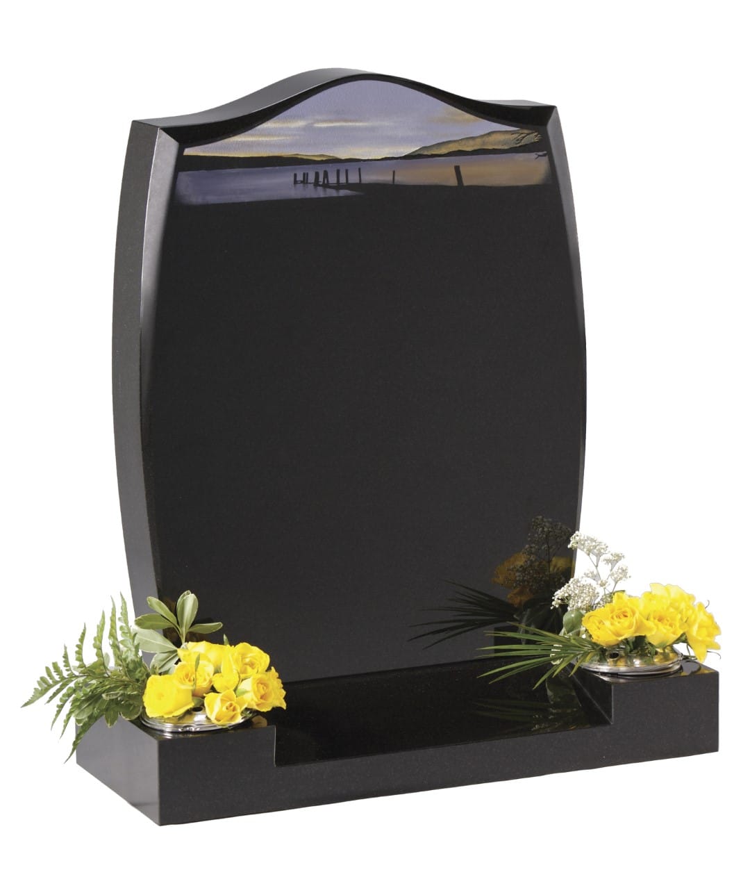 The WG5 Cemetery Memorial offers a modern interpretation of the classic ogee shape, creating a timeless tribute to your loved one. The defining feature of this memorial is the hand-painted scene that adorns the top, which can be customised to depict a landscape, hobby, or image that held special meaning.