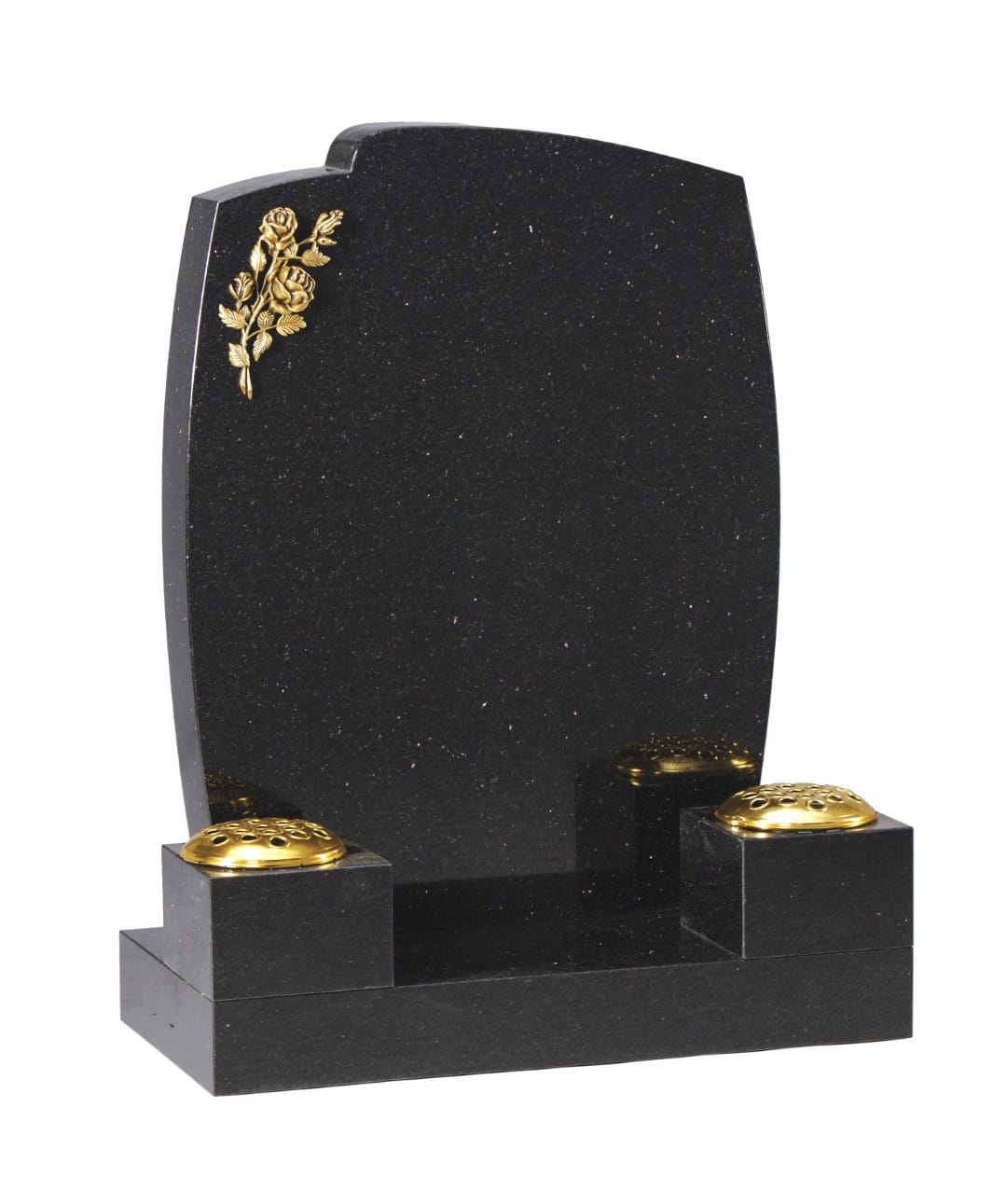 This elegant cemetery memorial features a bronze rose, symbolising enduring love and remembrance. Crafted from reflective granite with two vases for floral tributes, it offers a dignified way to honour your loved one’s memory.