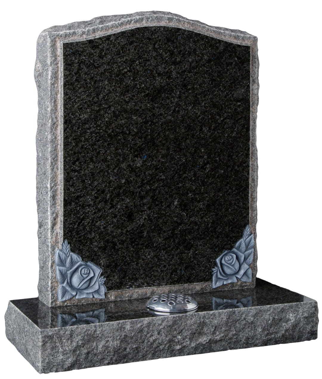 The face of this memorial is elegantly framed by expertly hand-carved roses, delicately highlighted to enhance their beauty and significance. Each rose is crafted with precision, offering a symbolic representation of love, remembrance, and the beauty of life.