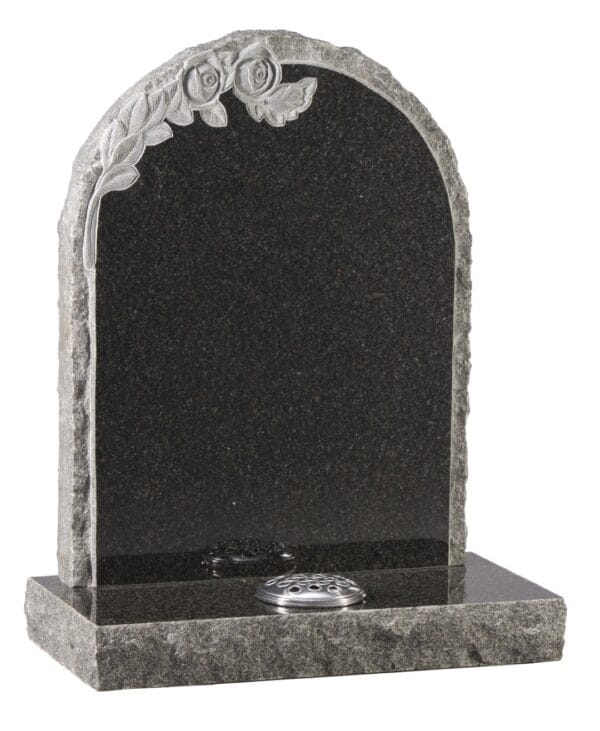 The WG69 Hand Carved Memorial showcases exceptional craftsmanship with natural carved roses following the pitched edges of both headstone and base. Crafted from durable granite, this dignified memorial offers a timeless tribute to your loved one. Request a quote for this elegant headstone today.